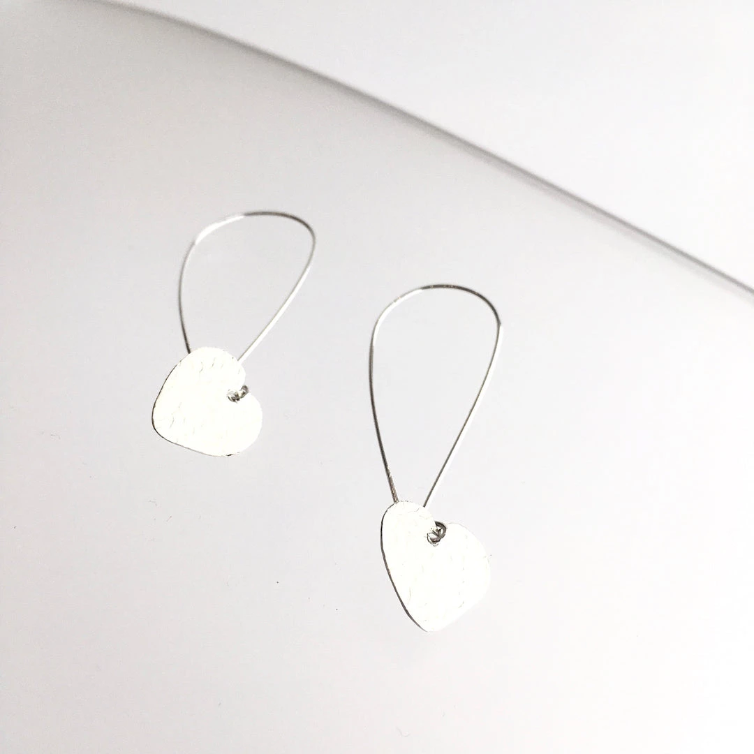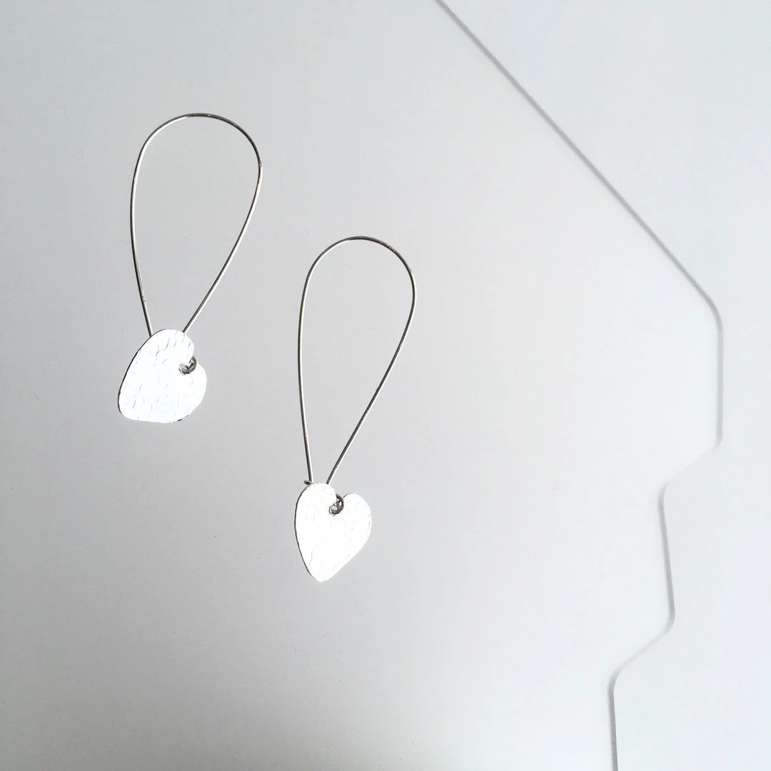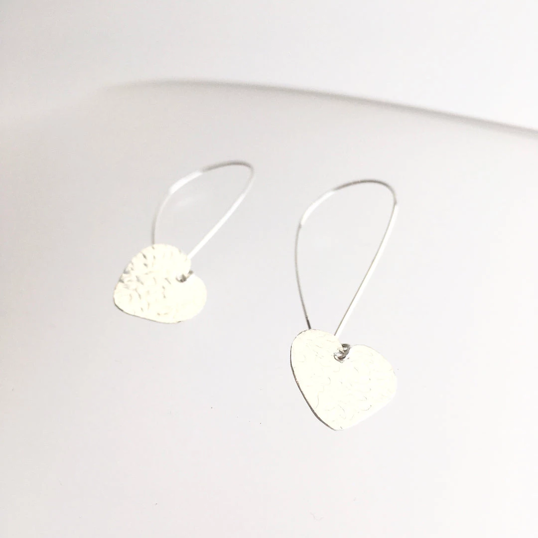 Silver Textured Heart Drop Earrings