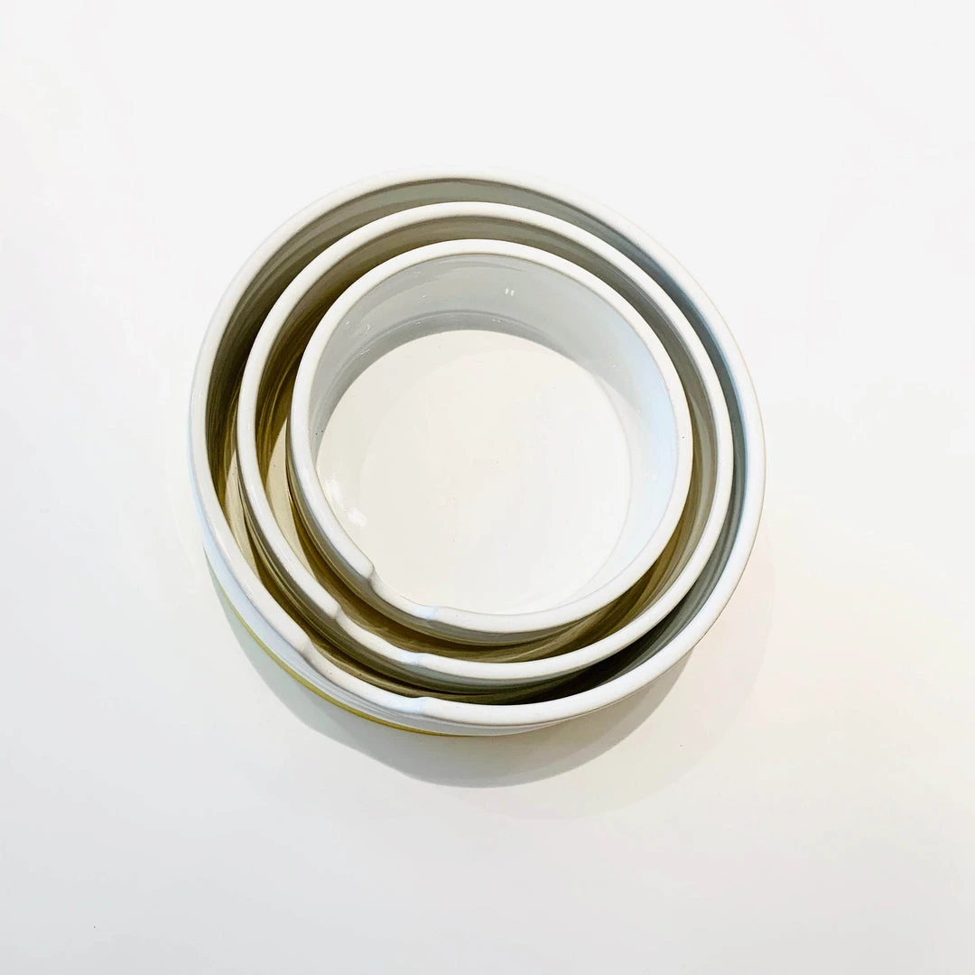 Three nesting handthrown stoneware bowls with small spoon rest nooks, gift boxed.