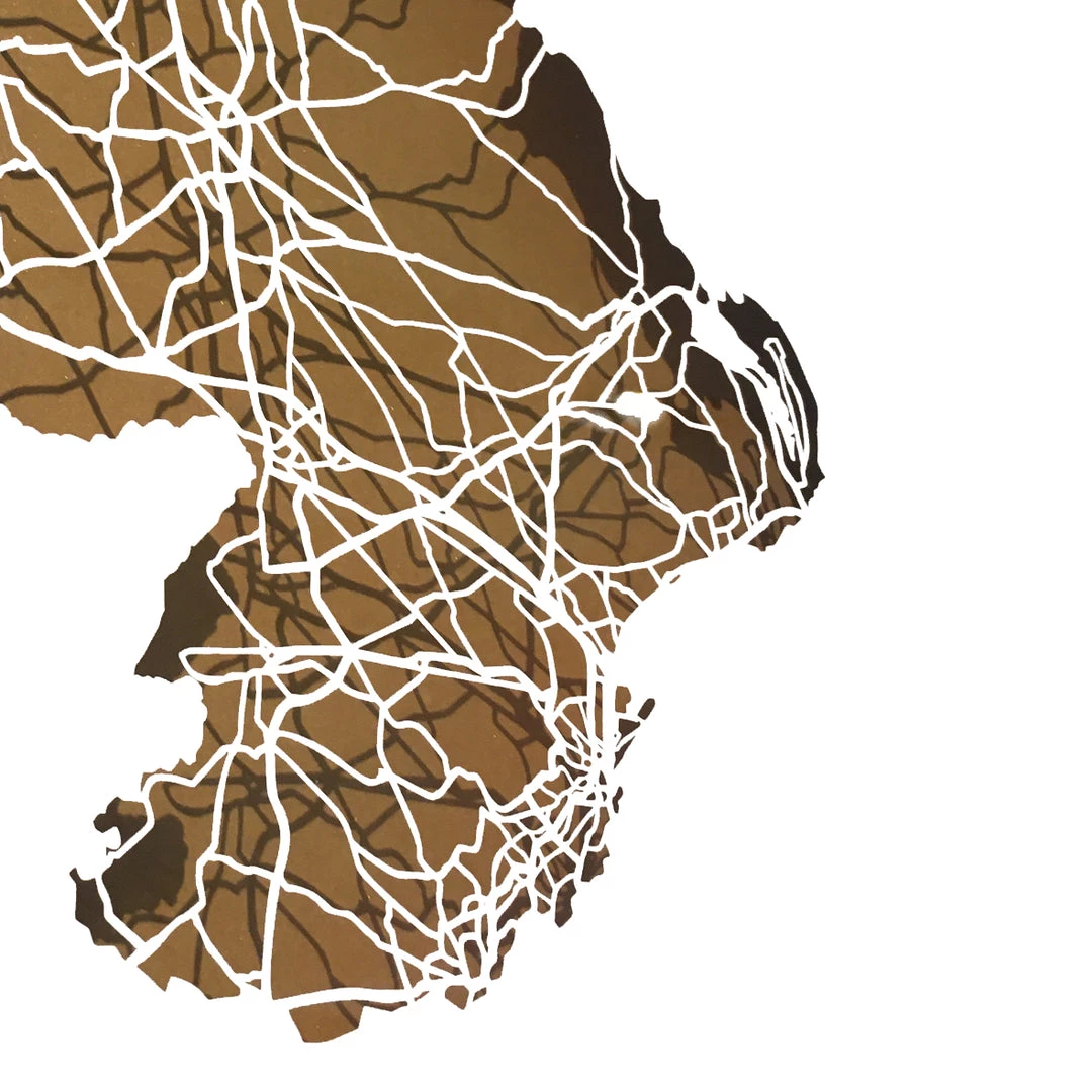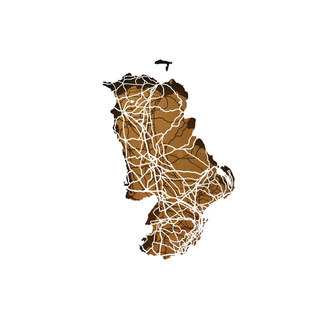 This really cool map of County Antrim charts all the main arterial routes that weave across the county.