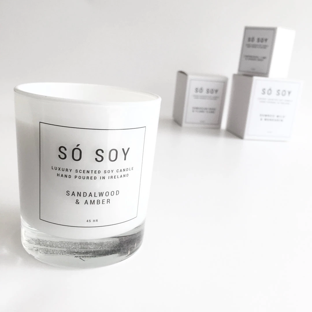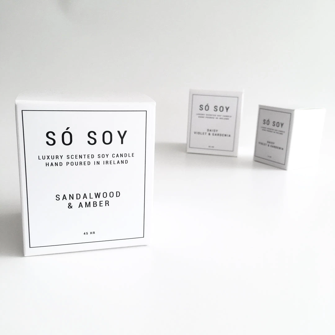 SÓ SOY hand pour each and every candle in their studio on the North coast of Ireland, using 100% natural soy wax and luxurious fragrance oils. Made from a blend of soya beans and botanical oils, SÓ SOY candles use wax from suppliers that are responsibly and ethically minded. Soy wax allows for a slower, sustainable burn that lasts longer than traditional petroleum based paraffin candles. Hannah works closely with a selection of UK based perfumers, using luxurious fragrance oils that are always vegan friendly.