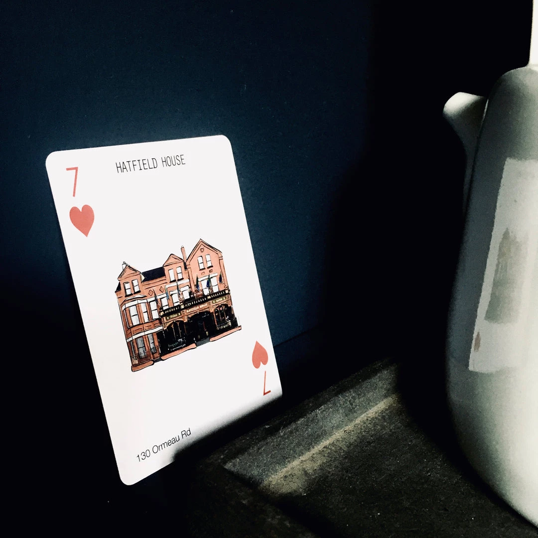 FRAMED Belfast Pub Print – 30cm x 21cm (Finished Size) + Deck of Cards Â