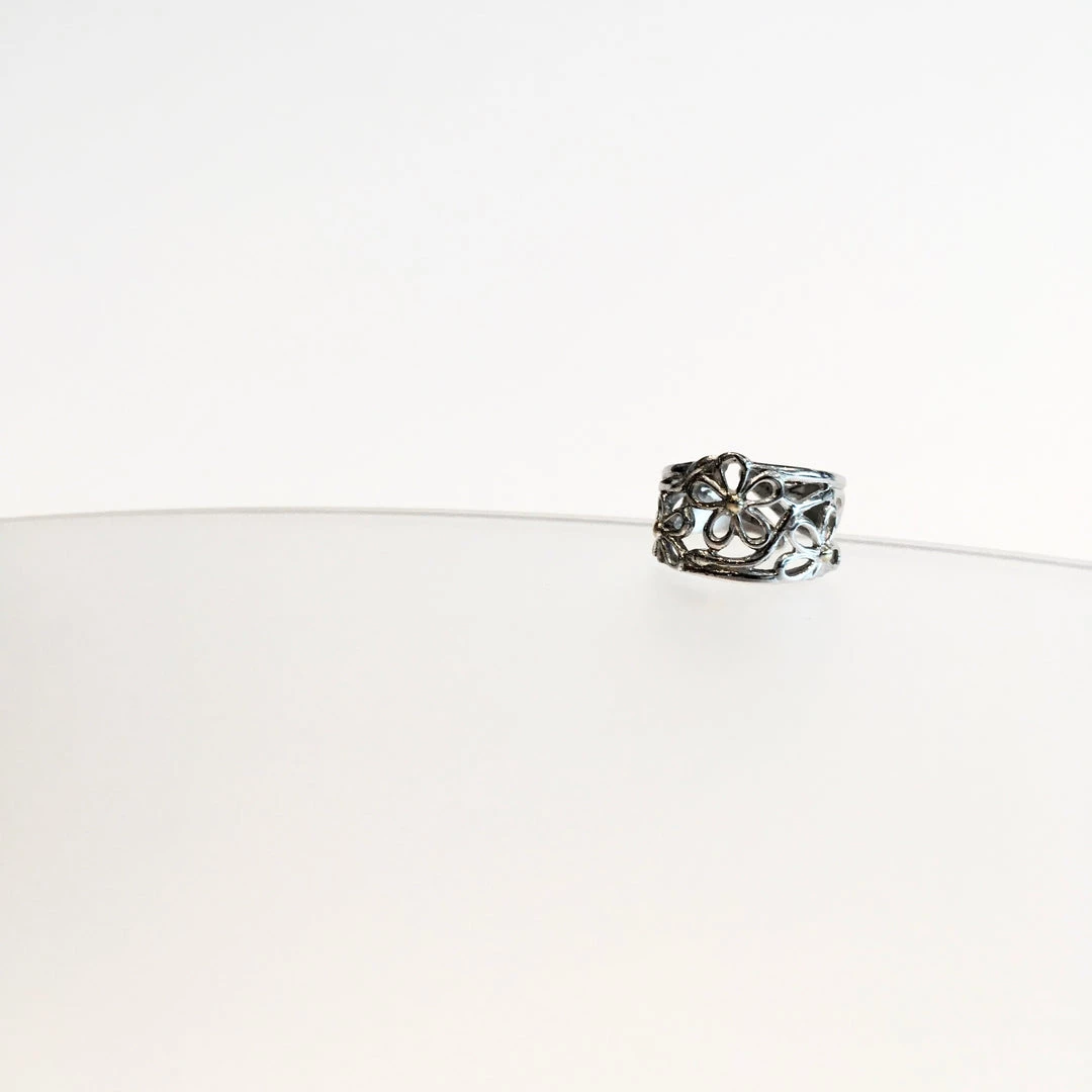 Set in a solid silver ring with gold plating. It is fully adjustable with beautiful soft finishing on the underside, so it’s the perfect fit!Â