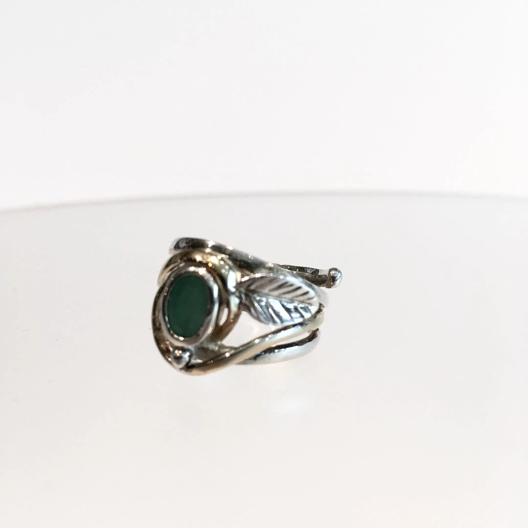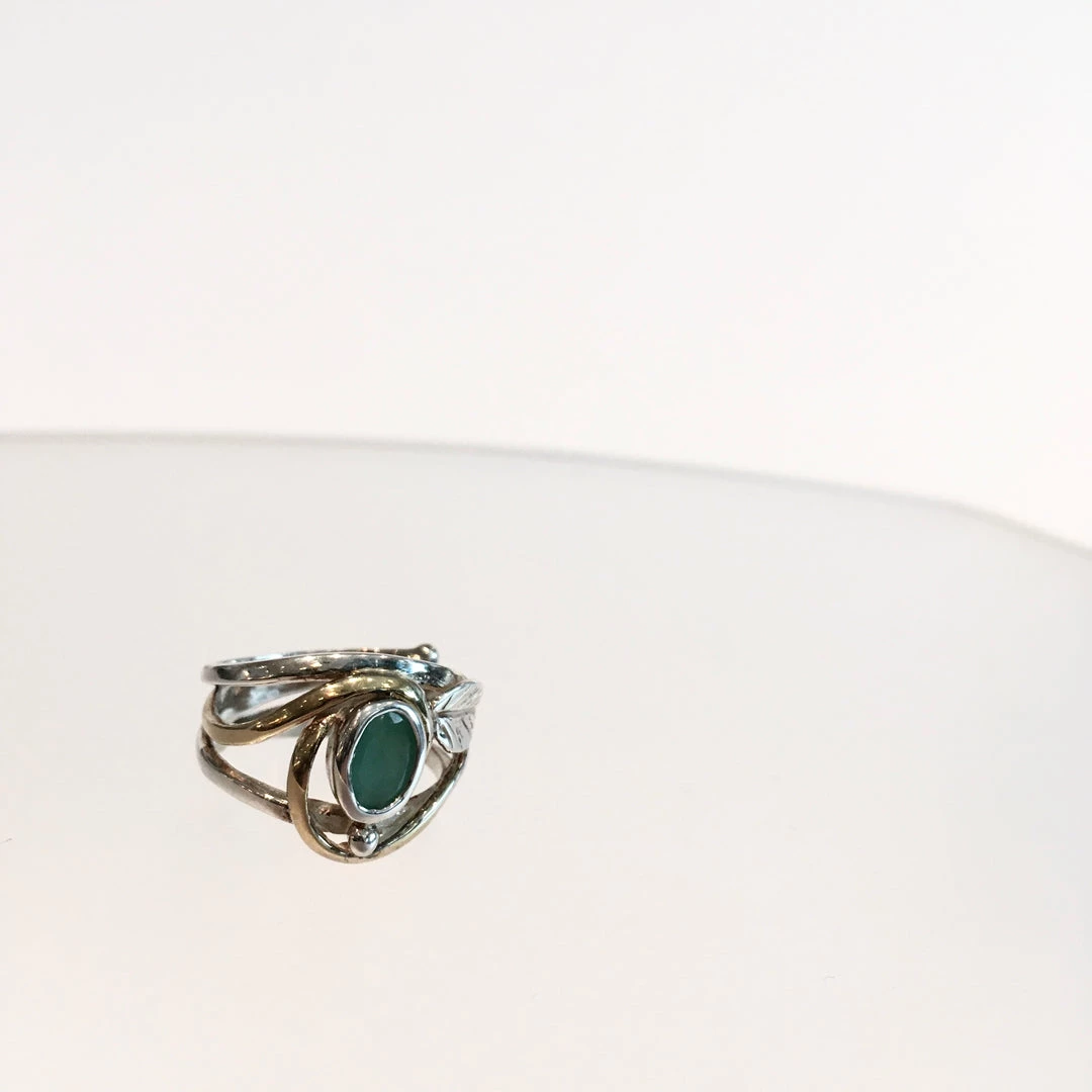 Leaf Ring with Emerald – Solid Silver & Gold Plate