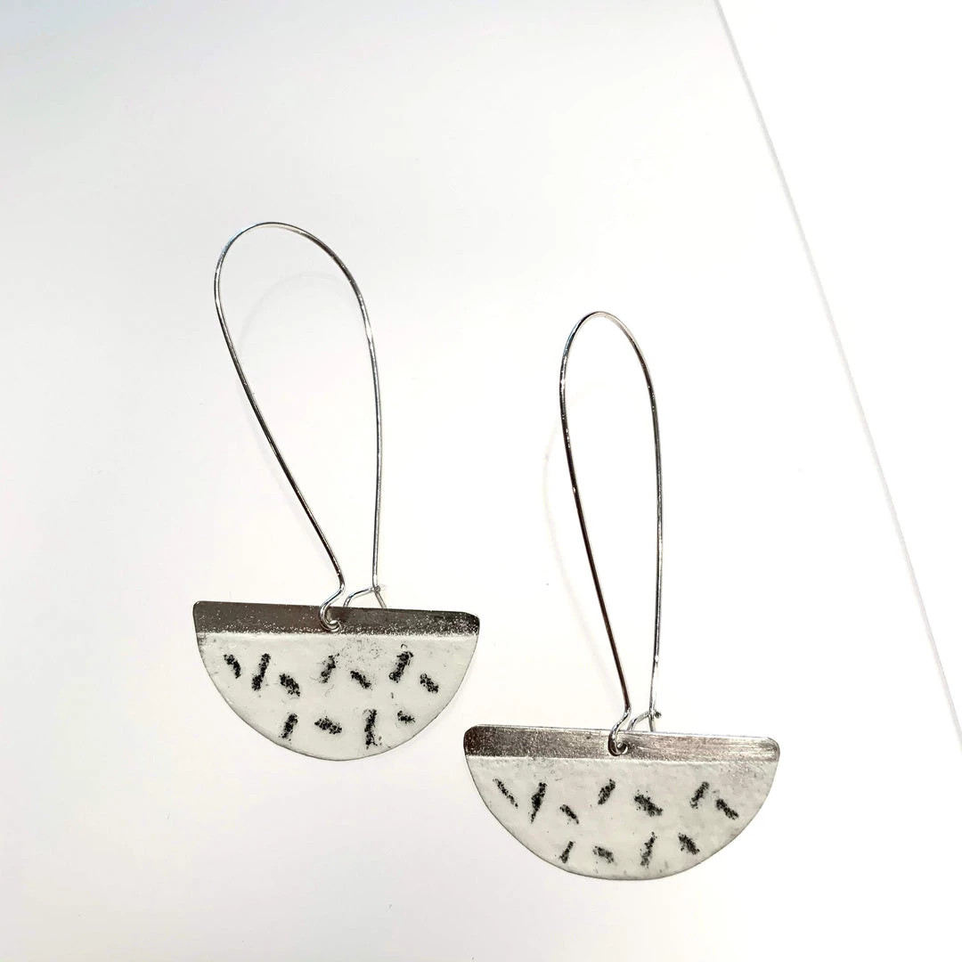 Silver Enamel Half Moon Drop EarringsÂ