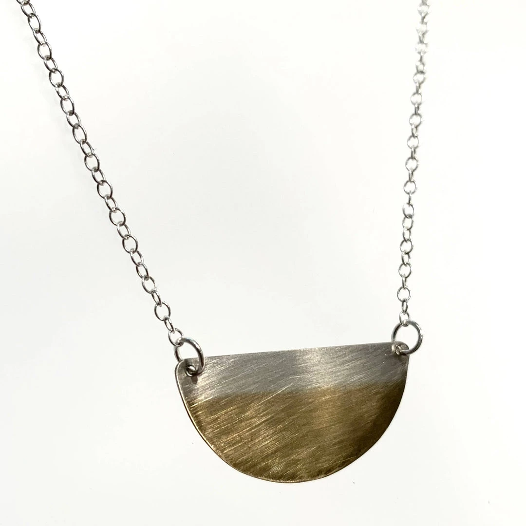 Silver & Gold Dipped Half Moon Pendant
