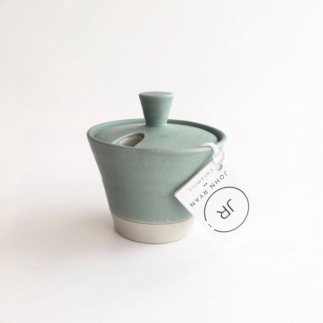 Stephen has know John Ryan for a few years (I’m pretty sure these potters have a secretive ‘Free Potters’ society thing going on!). And aside from being adamant that John’s a lovely guy, he has always rated John as being a great contemporary Irish studio potter, one who is forward thinking and able to respond to customers needs and wants and adapt his, our, traditional pottery forms. John isn’t making sponge-ware pots, he’s making new pots for a new Ireland. Â
