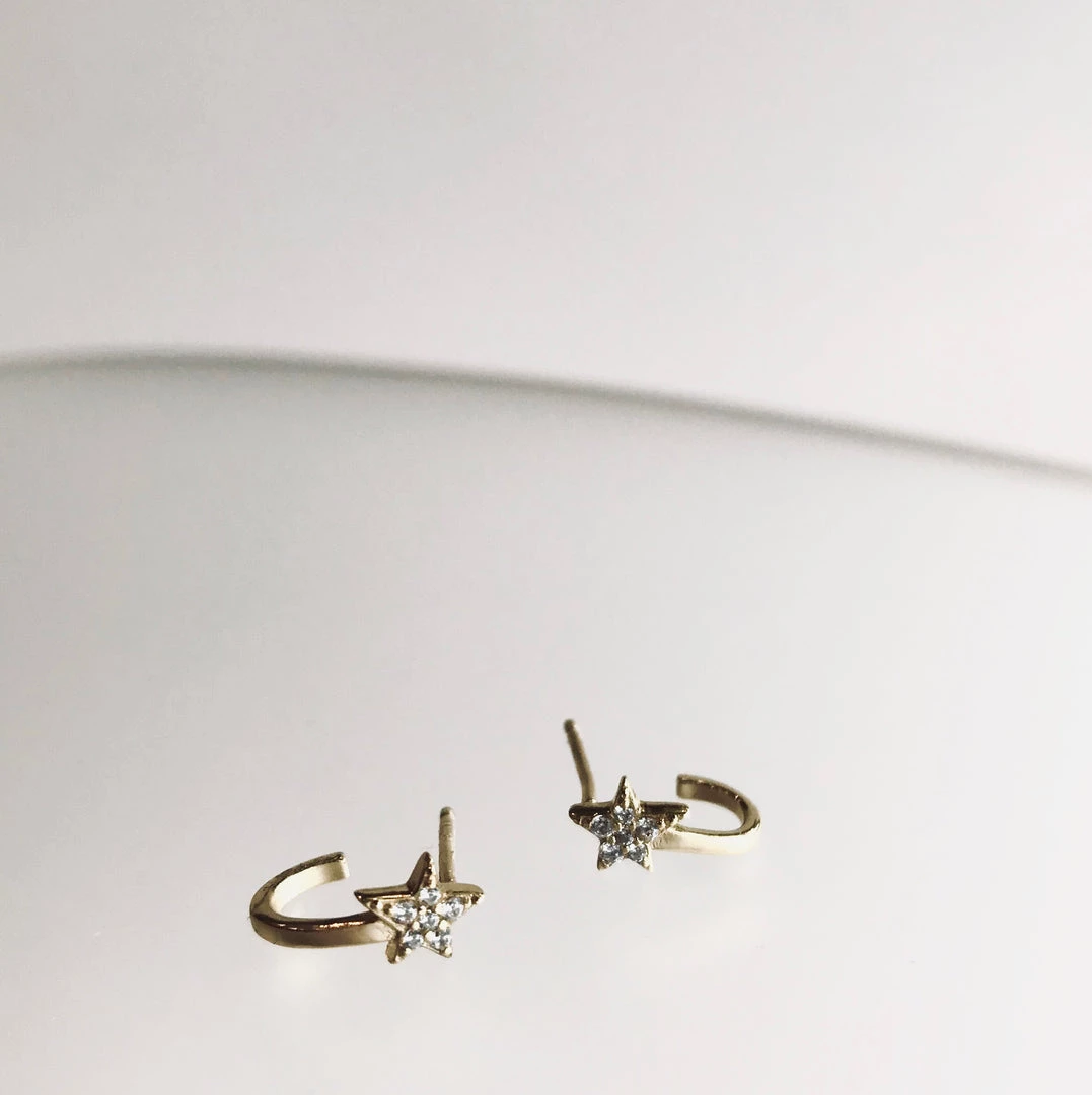STARS – Earrings Huggie + Cubic Zirconia Gold Vermeil