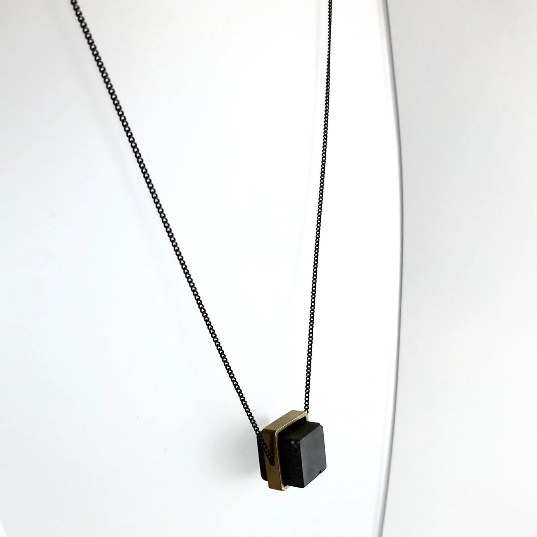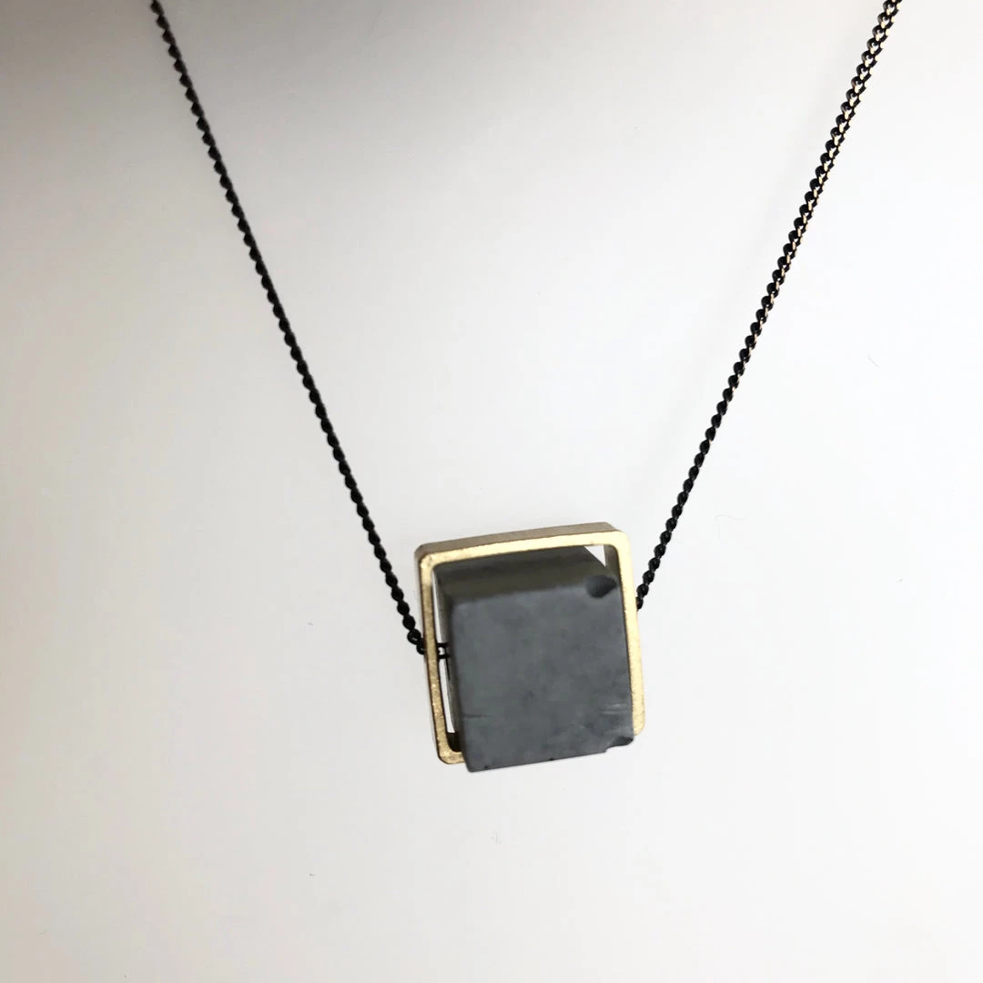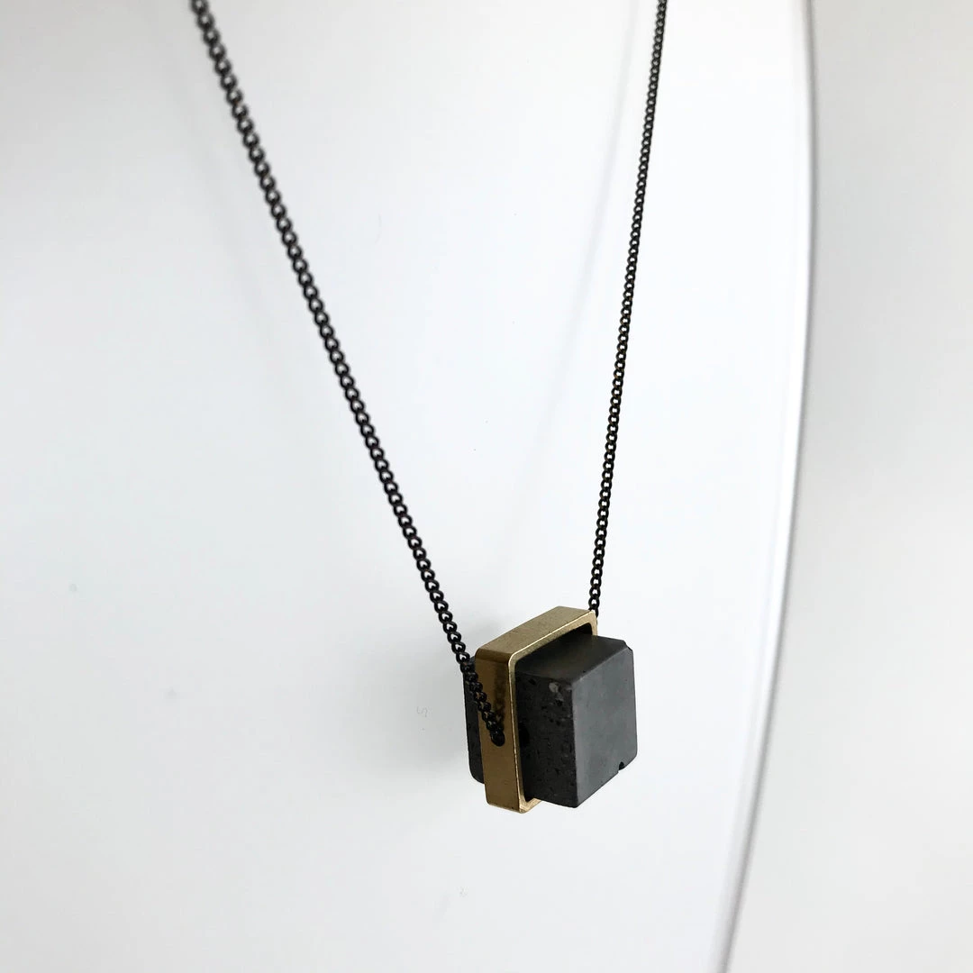 CUBEÂ Concrete Geometric Brass Necklace – by Kaiko