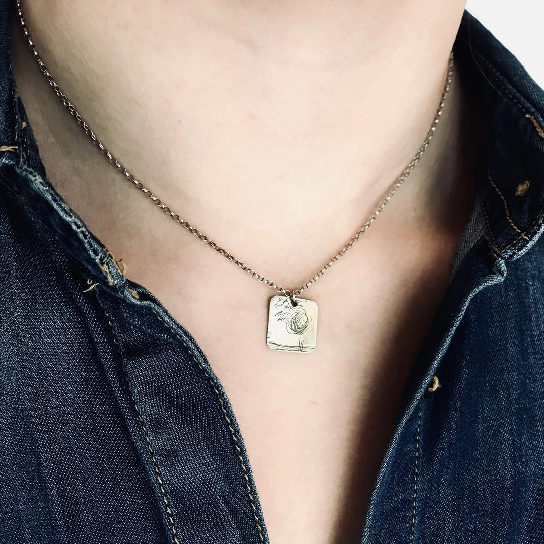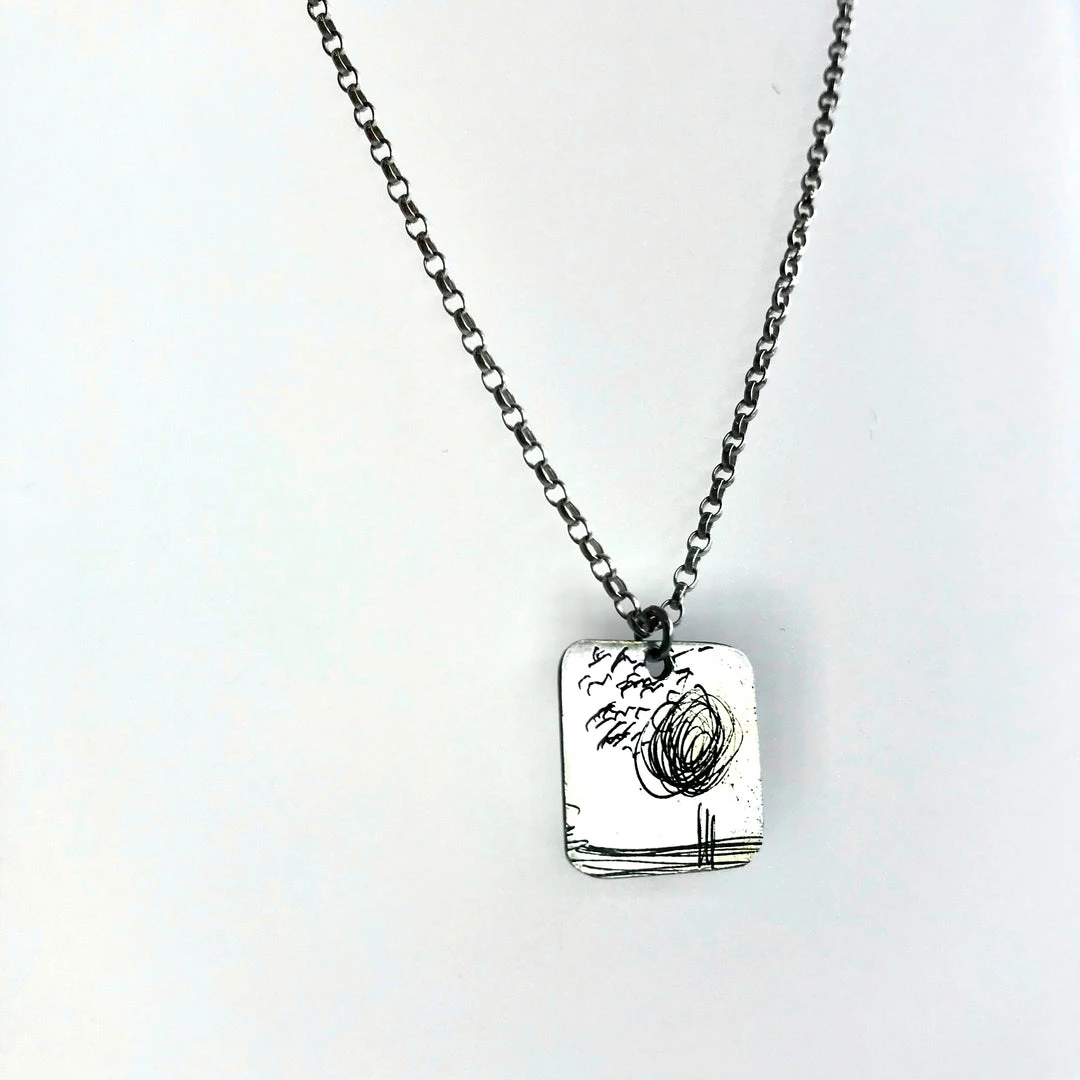 Nightwalk Oxidised Silver Sketch Pendant NecklaceÂ