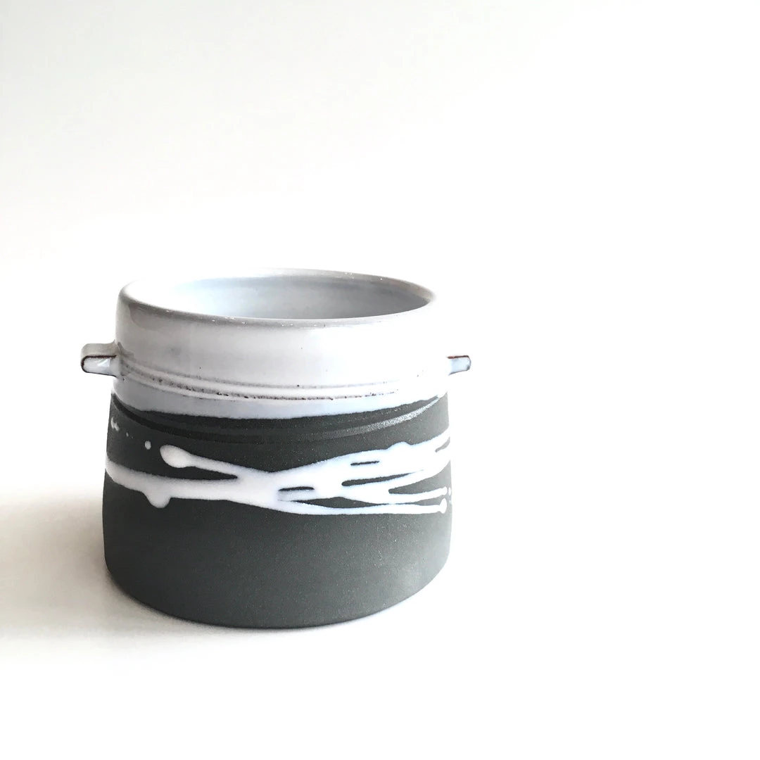 Pauls pots are domestic, functional and aesthetically pleasing, relaxed forms with a simple splash of white tin glaze that sits beautifully against the soft black ceramic.