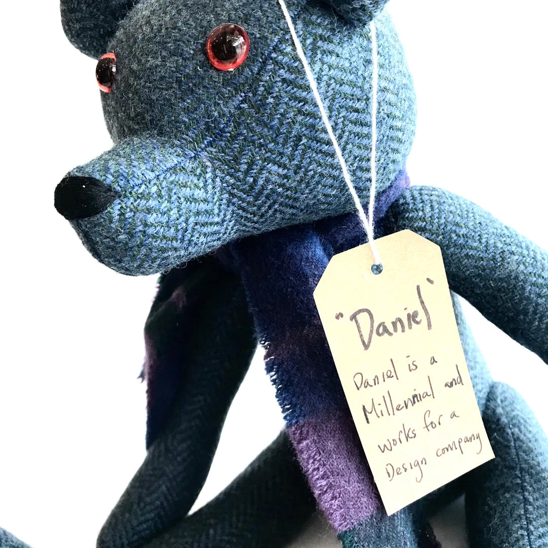 Lovingly handmade by Edel from ‘Pieces of Great’ these Bears’s, Hare’s & Badgers are totally stunning – genuine Irish heirloom’s being made today. Edel uses a blend of Irish woven wool to create each piece at her home in County Tipperary, and often, if it’s a cold day, they will be wearing their mini scarf, made locally by John Hanley & Co. at Ballyartella Woollen Mills.Â