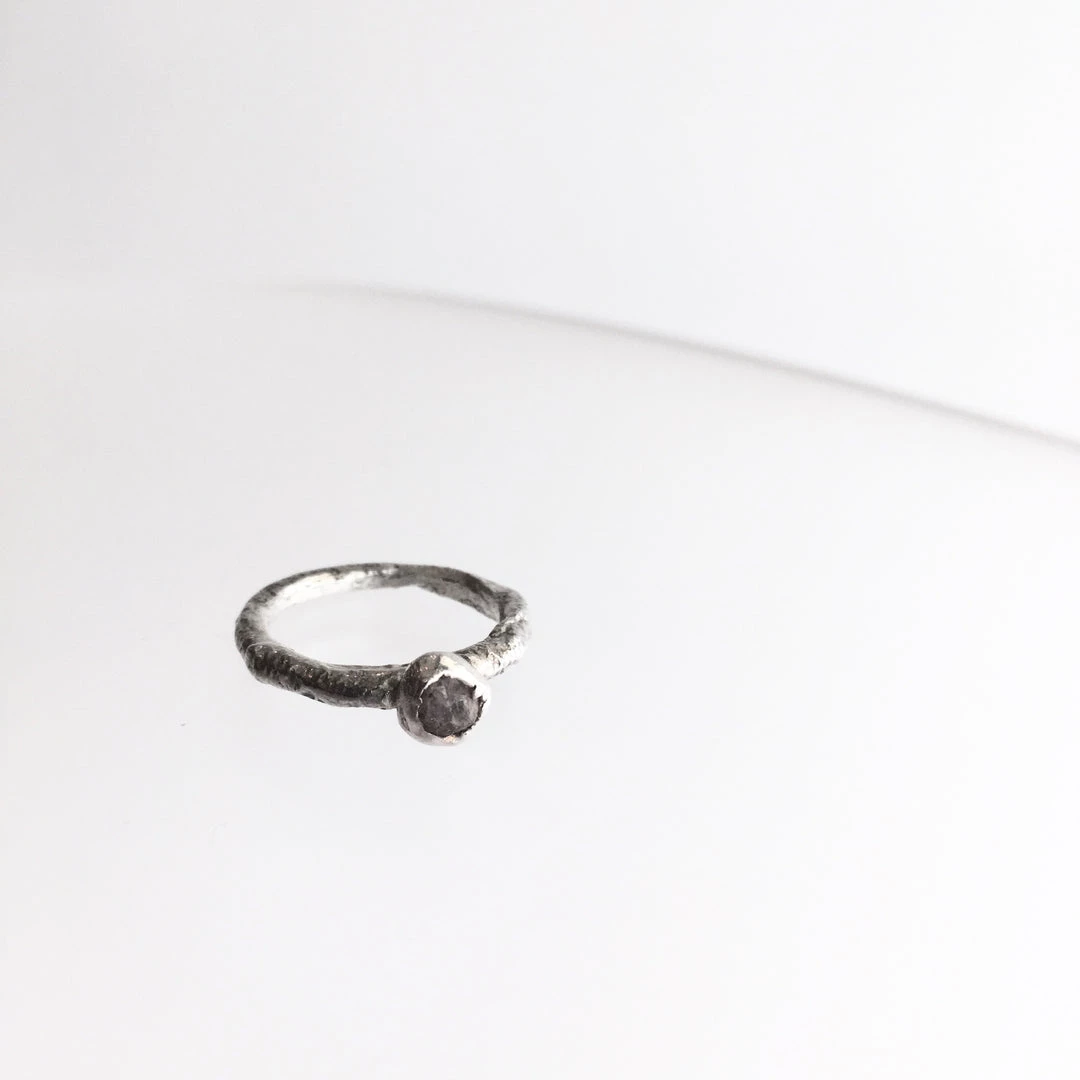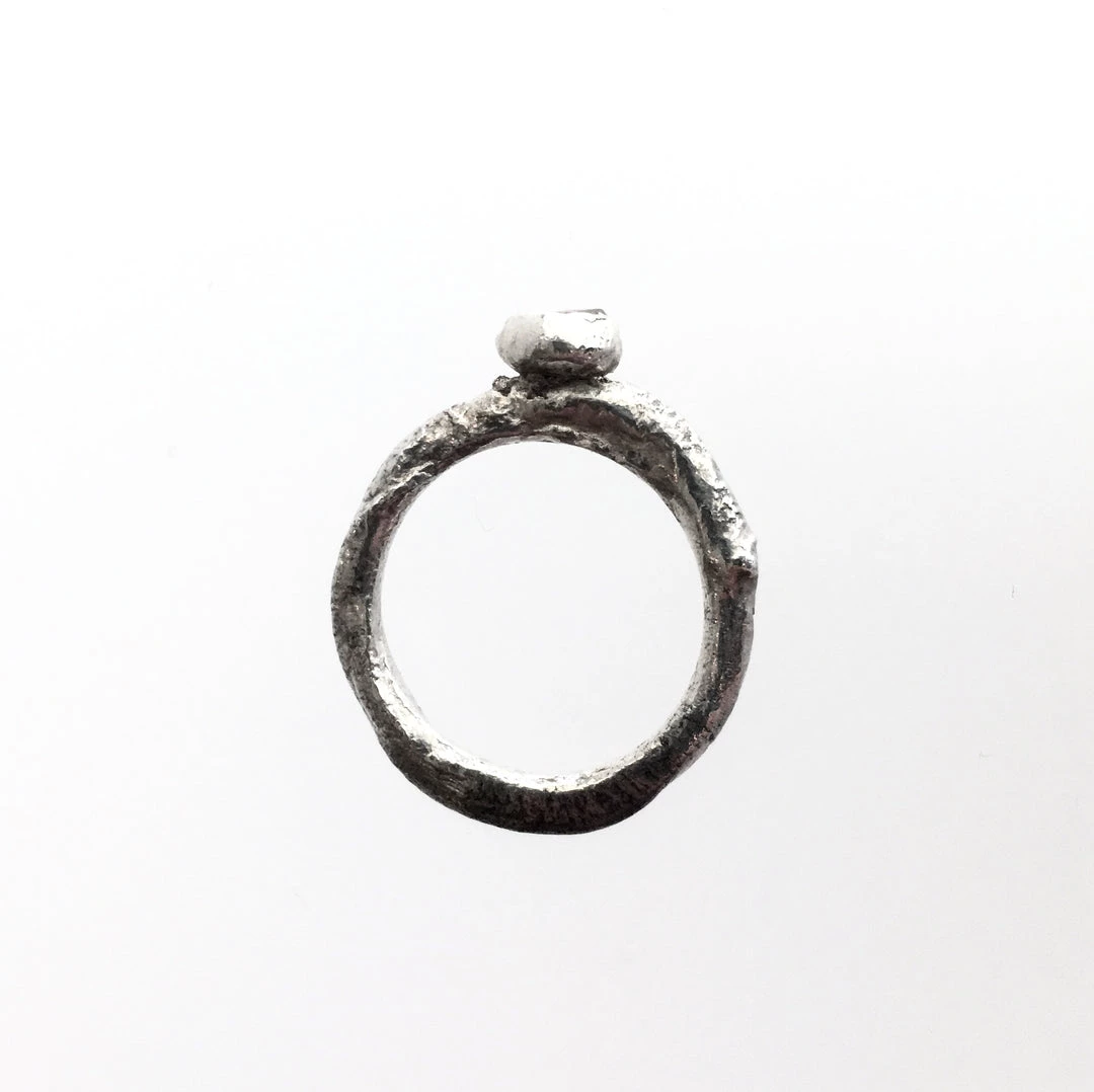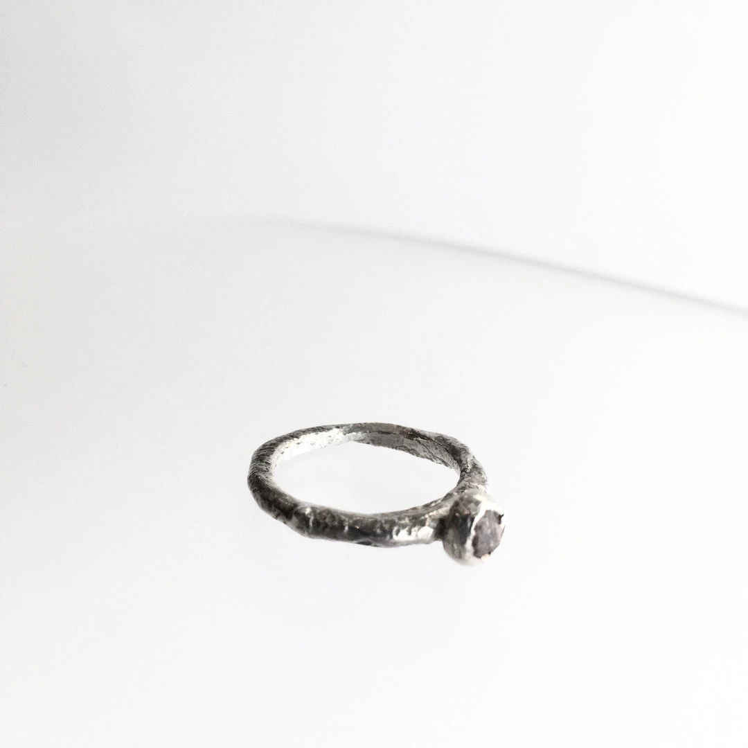 Silver Beaten Raw Ruby Stone Ring