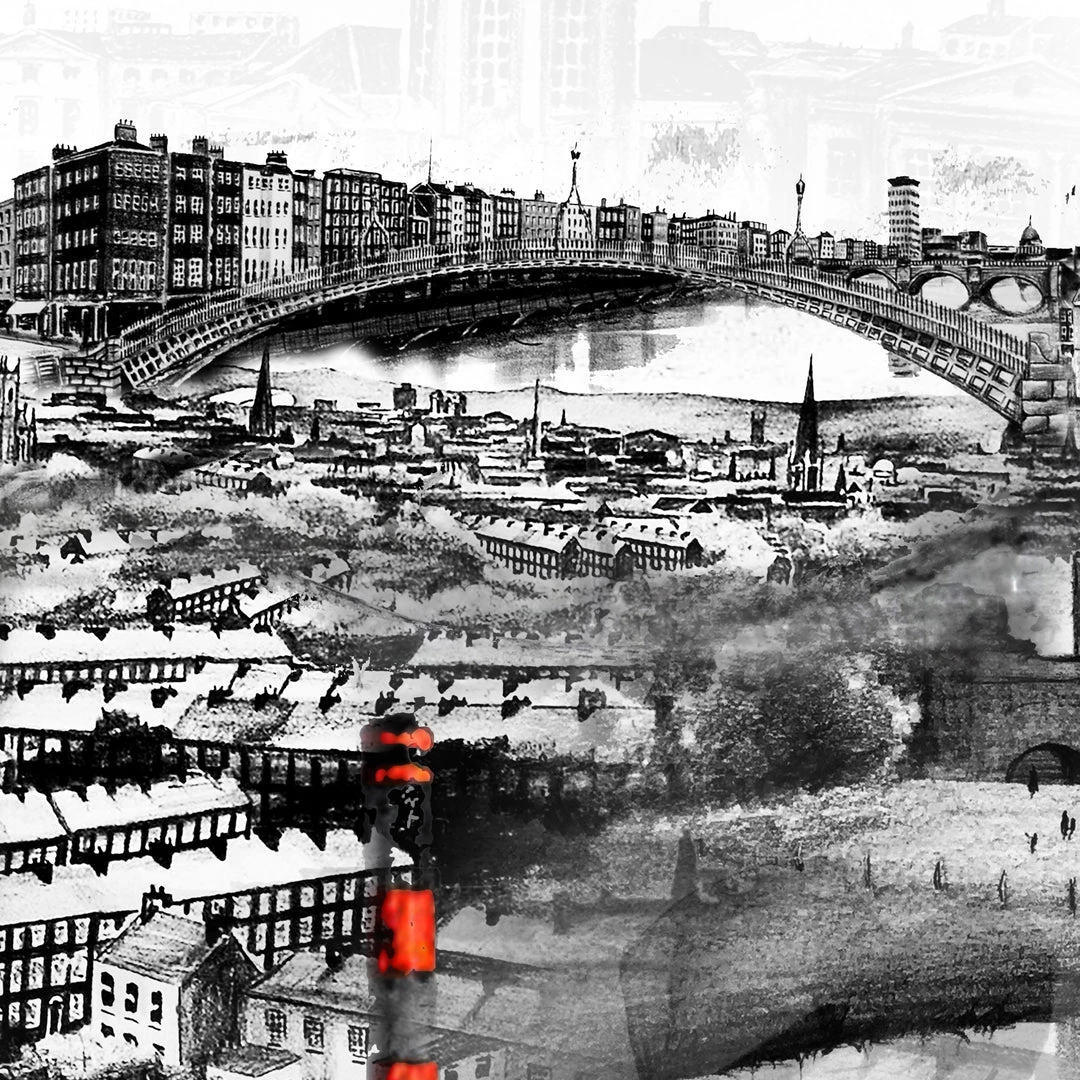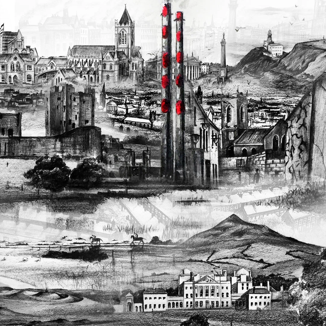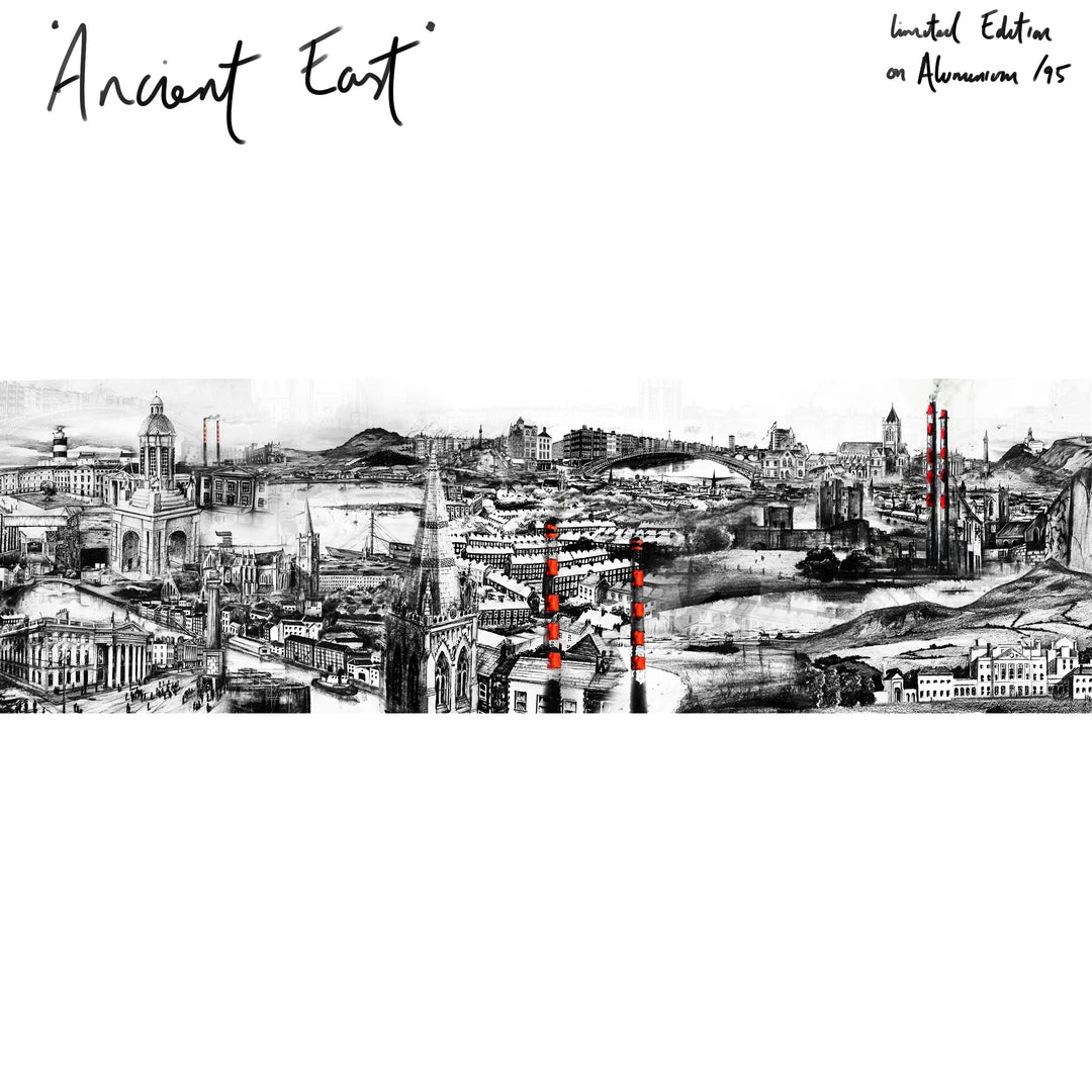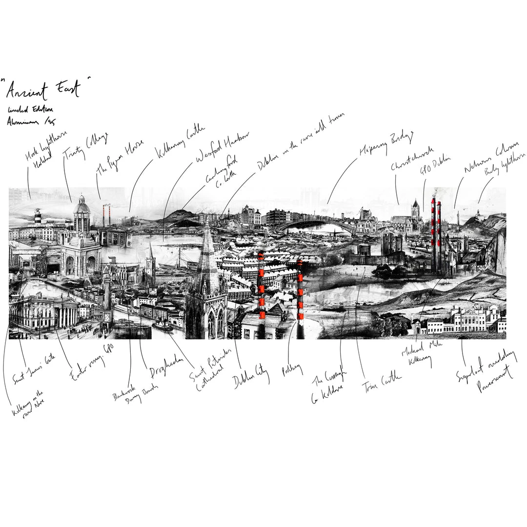 ‘Ancient East’ is a moody and atmospheric piece that captures the essence of the ancient East of Ireland. These multi layered pieces weave a narrative through coastlines and ports, & iconic structures and figures. Limited Editions of /95 and are available on brushed Aluminium or Paper, these large pieces will light up and invigorate any space.