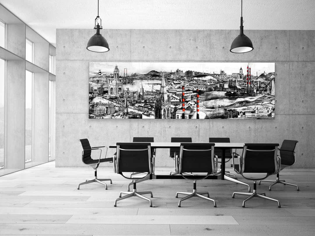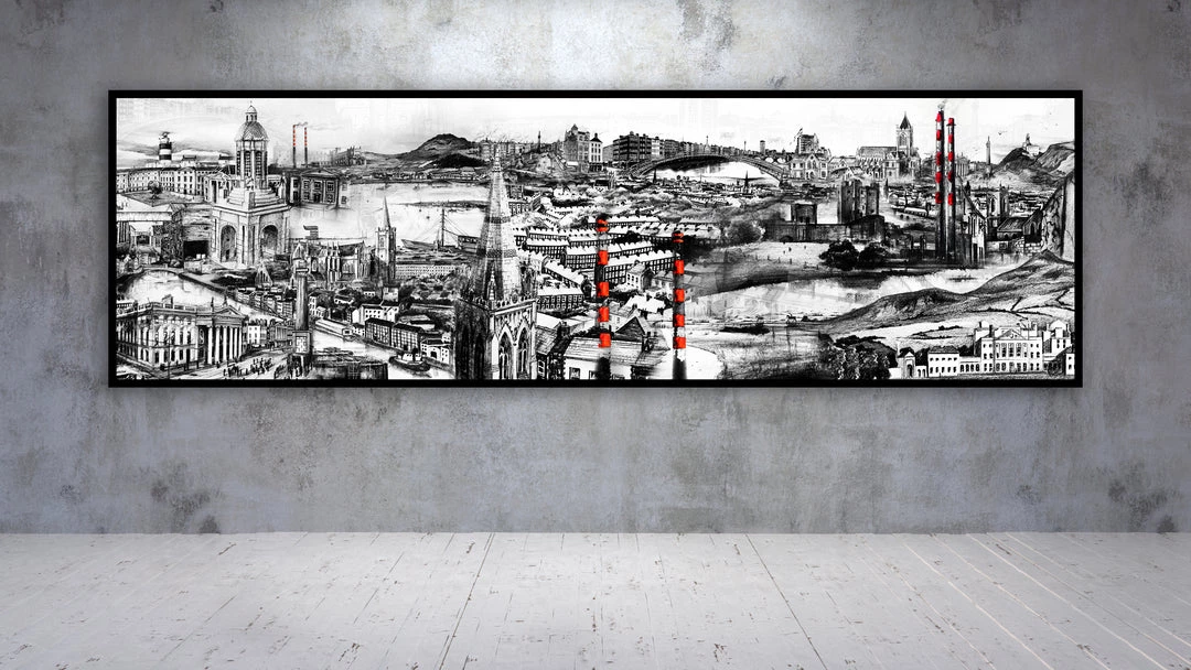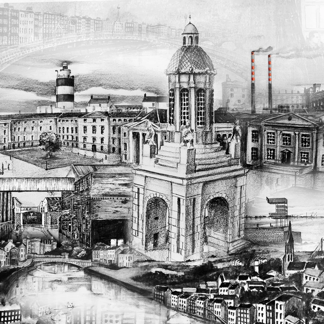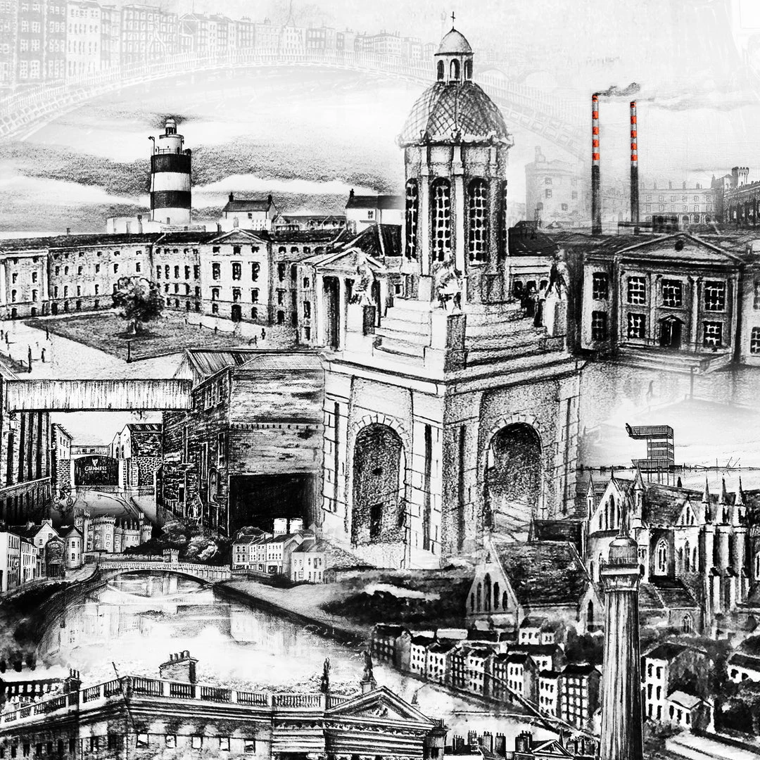 ‘Ancient East’ is a moody and atmospheric piece that captures the essence of the ancient East of Ireland. These multi layered pieces weave a narrative through coastlines and ports, & iconic structures and figures. Limited Editions of /95 and are available on brushed Aluminium or Paper, these large pieces will light up and invigorate any space.