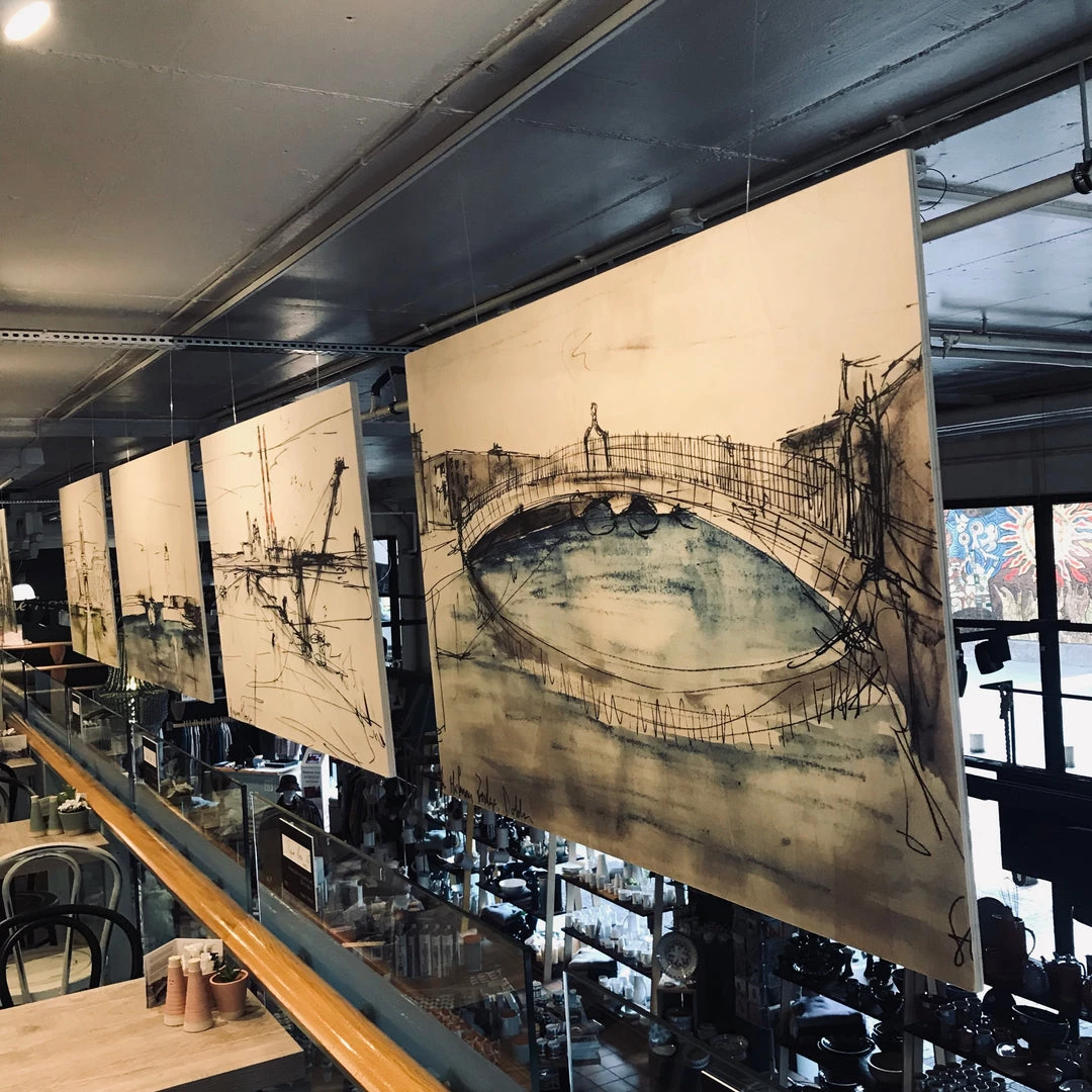Alternatively Stephen’s drawings are available as Limited Edition Prints on Plywood (the ‘sketchy’ scenes look amazing on wood), and also as paper prints (in 3 different sizes listed below). You can see some examples of the wooden pieces, paper prints and the porcelain being made in the images.