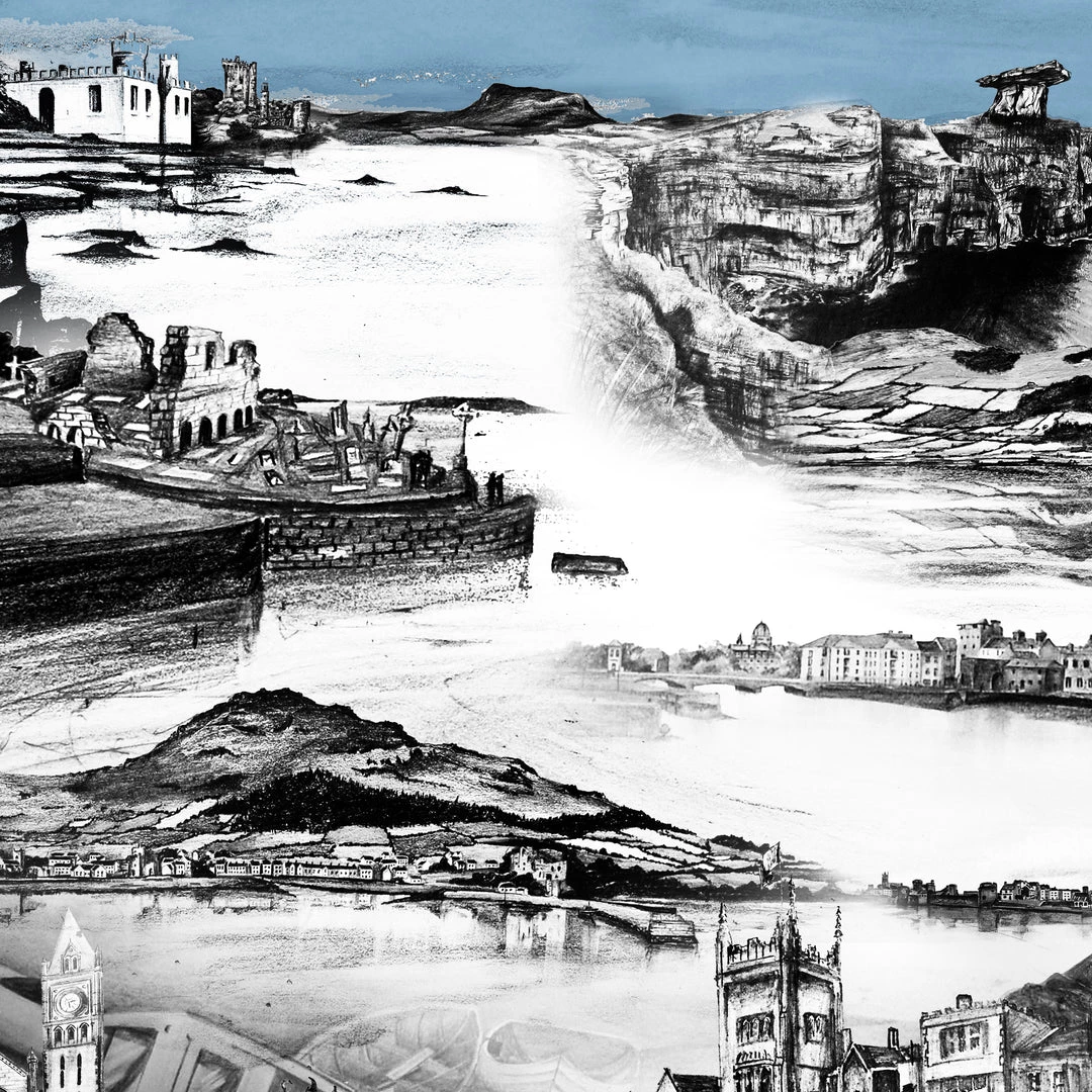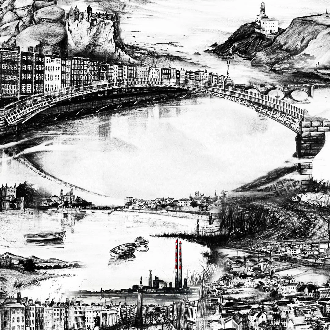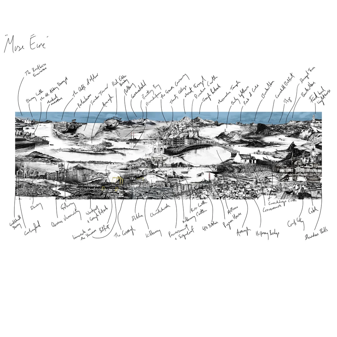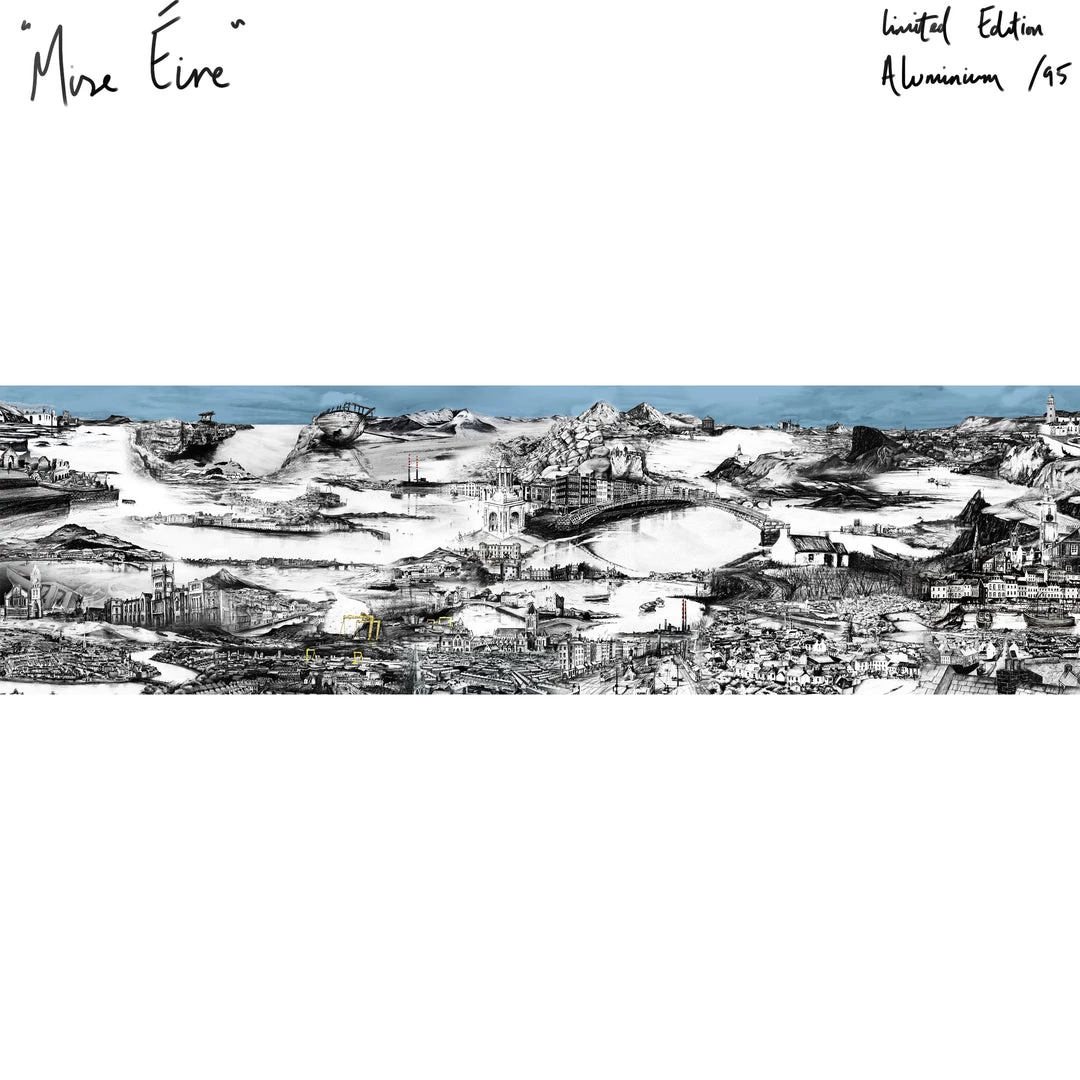 ‘Mise Eire’ is a moody and atmospheric piece that captures the essence of Ireland, Eire. These multi layered pieces weave a narrative through coastlines and ports, & iconic structures and figures. Limited Editions of /95 and are available on brushed Aluminium or Paper, these large pieces will light up and invigorate any space.