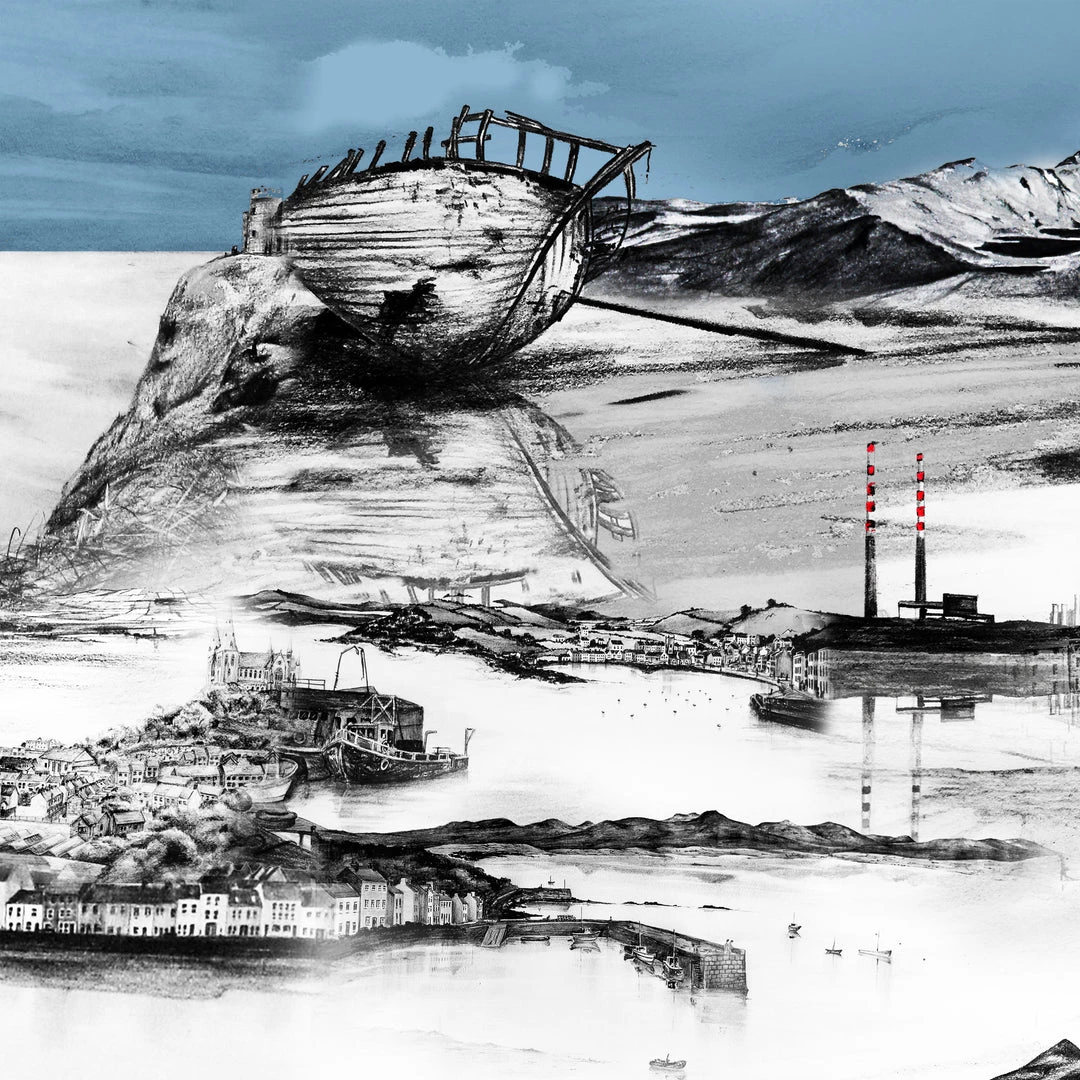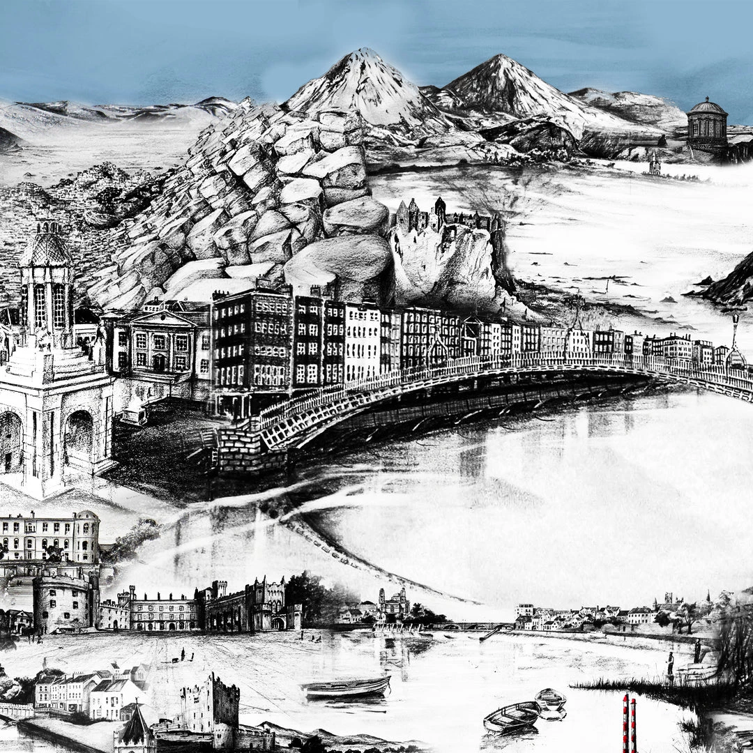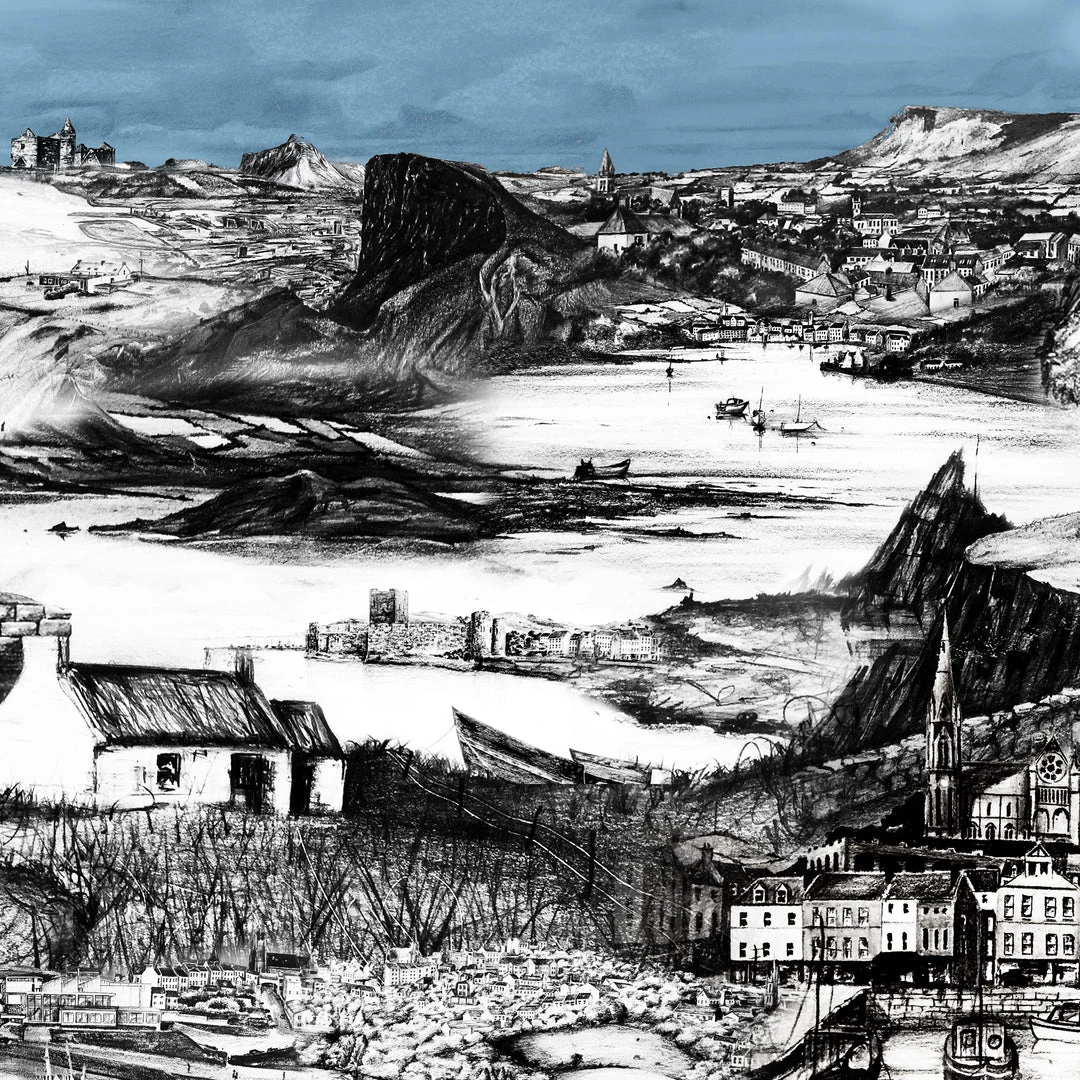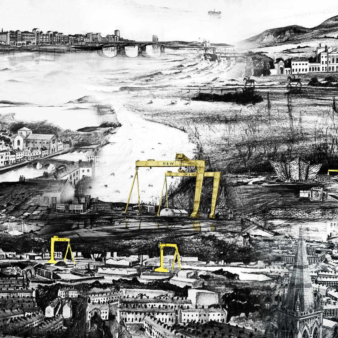 ‘Mise Eire’ is a moody and atmospheric piece that captures the essence of Ireland, Eire. These multi layered pieces weave a narrative through coastlines and ports, & iconic structures and figures. Limited Editions of /95 and are available on brushed Aluminium or Paper, these large pieces will light up and invigorate any space.