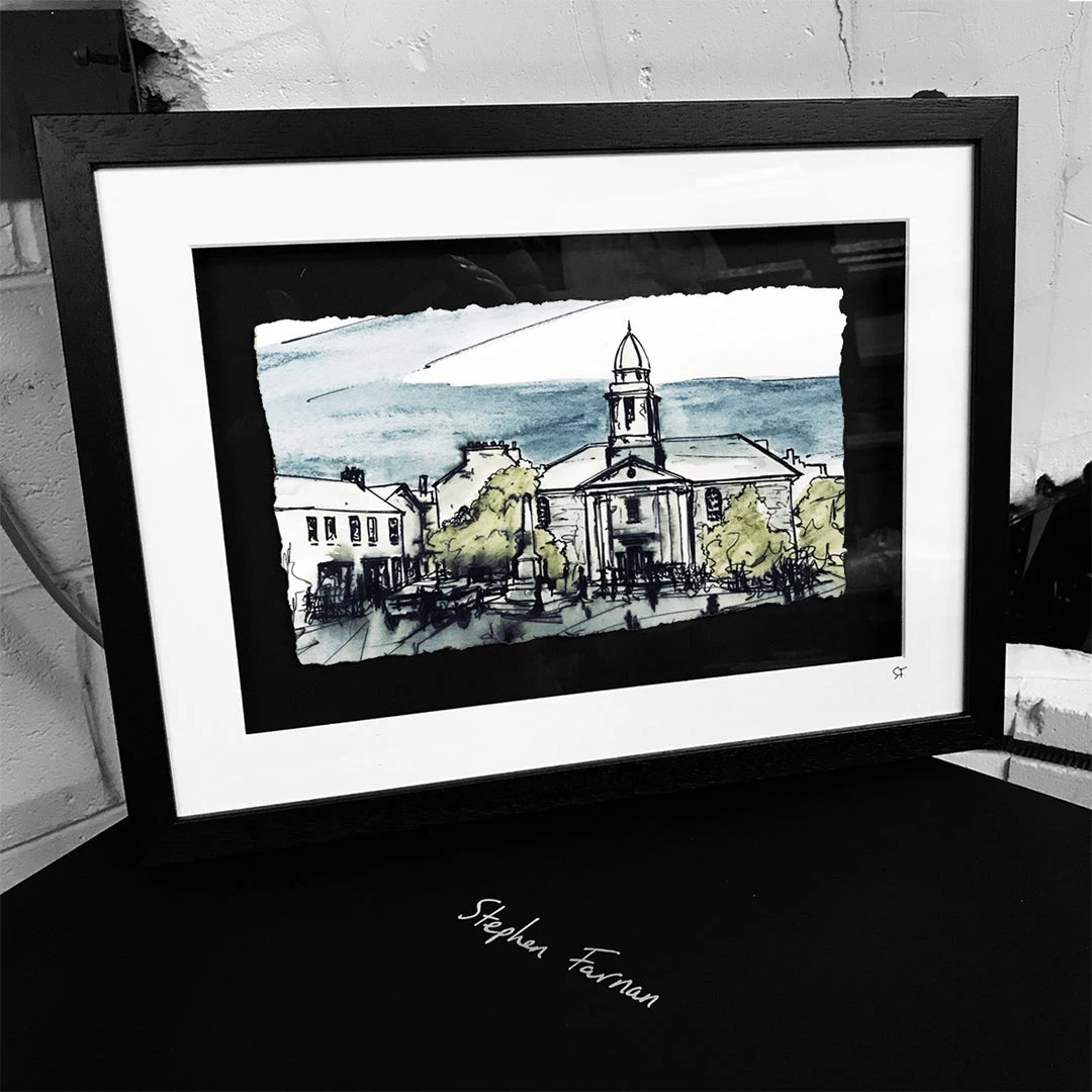 Alternatively Stephen’s drawings are available as Limited Edition Prints on Plywood (the ‘sketchy’ scenes look amazing on wood), and also as paper prints (in 3 different sizes listed below). You can see some examples of the wooden pieces, paper prints and the porcelain being made in the images.