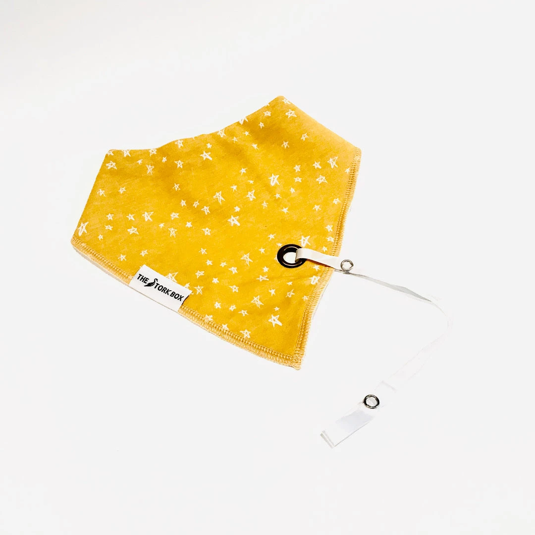 Yellow Stars Dribble Bib (suitable for up to 2 years) – cotton front, fleece back
