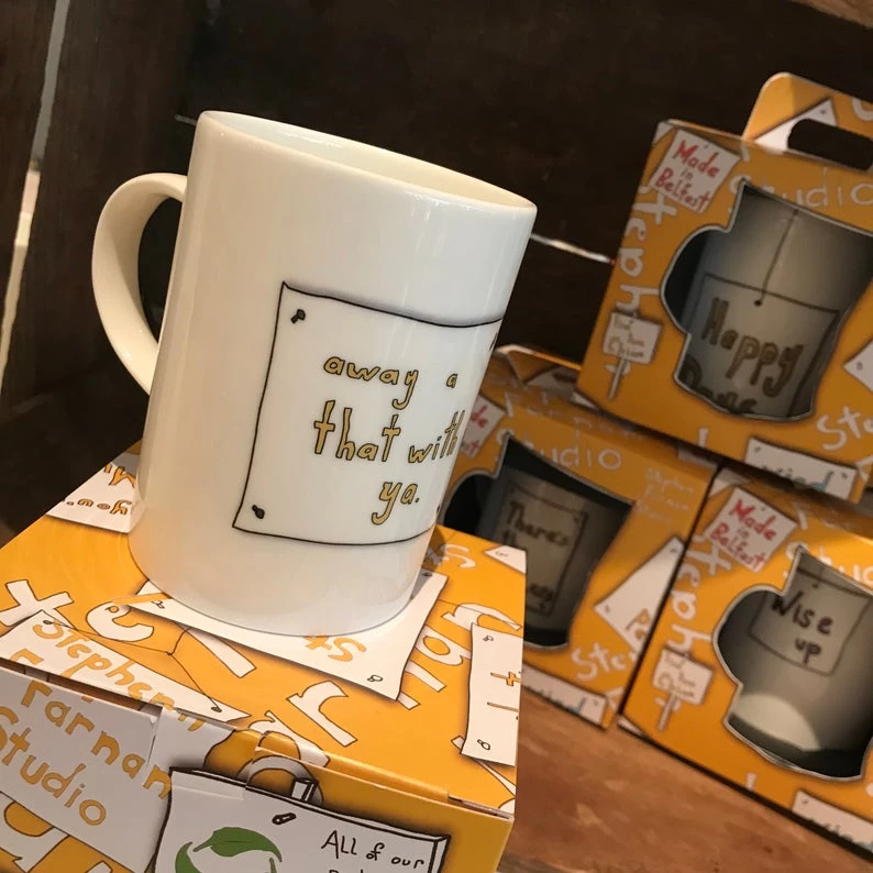 We make all of our mugs at our Townsend Street Studio in Belfast – literally on the peace line! We aim to make the best quality gifts, and our Bone China Mugs are no exception!