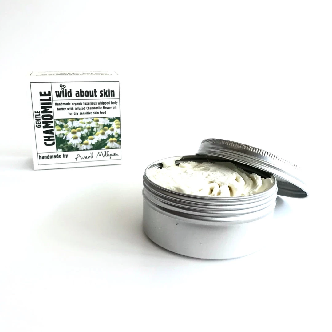 GENTLE CHAMOMILE Whipped Body Butter – with Chamomile Oil for dry skin – for sensitive skin with no additives – totally organic and handmade.