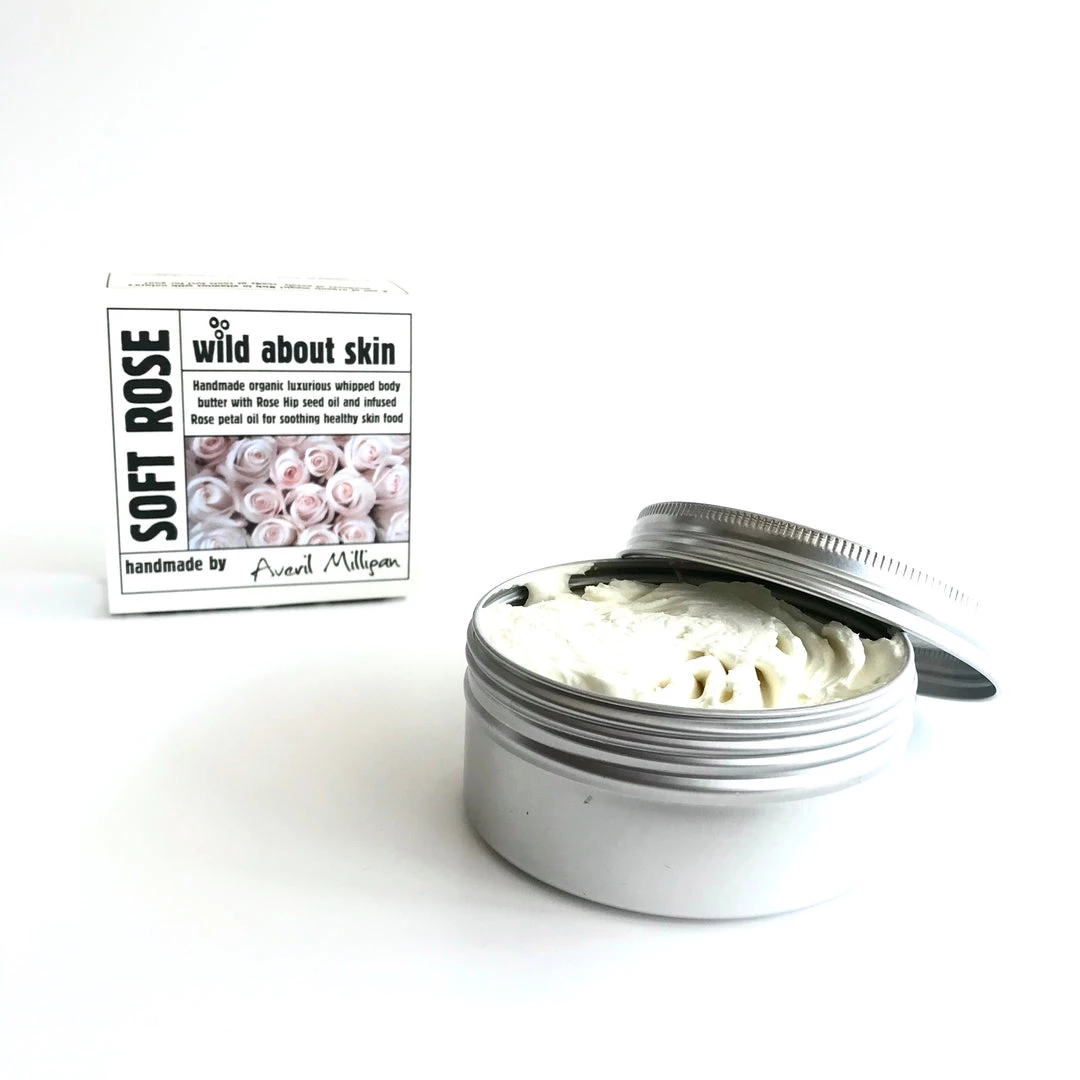 SOFT ROSE Whipped Body Butter – with Rose Hip and Petals – for sensitive skin with no additives – totally organic and handmade.