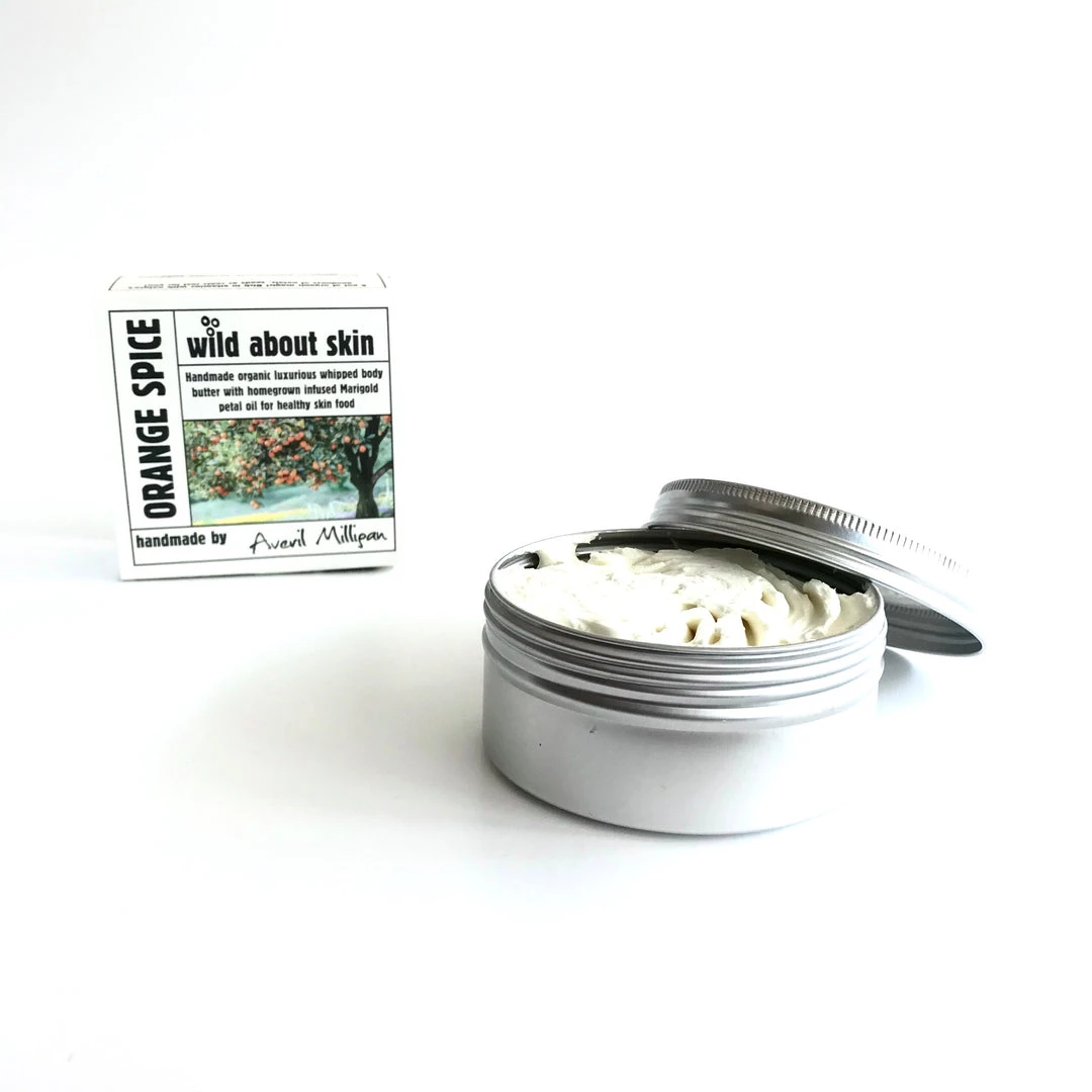 ORANGE SPICE Whipped Body Butter – with infused Marigold Petal Oil – for sensitive skin with no additives – totally organic and handmade.